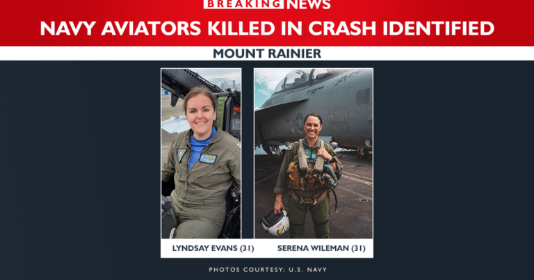 Lt. Cmdr. Lyndsay P. Evans, a Naval Flight Officer, and Lt. Serena N. Wileman, a Naval Aviator, died when their EA-18G Growler jet from the Electronic Attack Squadron, known as “Zappers,” crashed east of Mount Rainier last Tuesday during a training flight, according to Whidbey Island Naval Air Station.