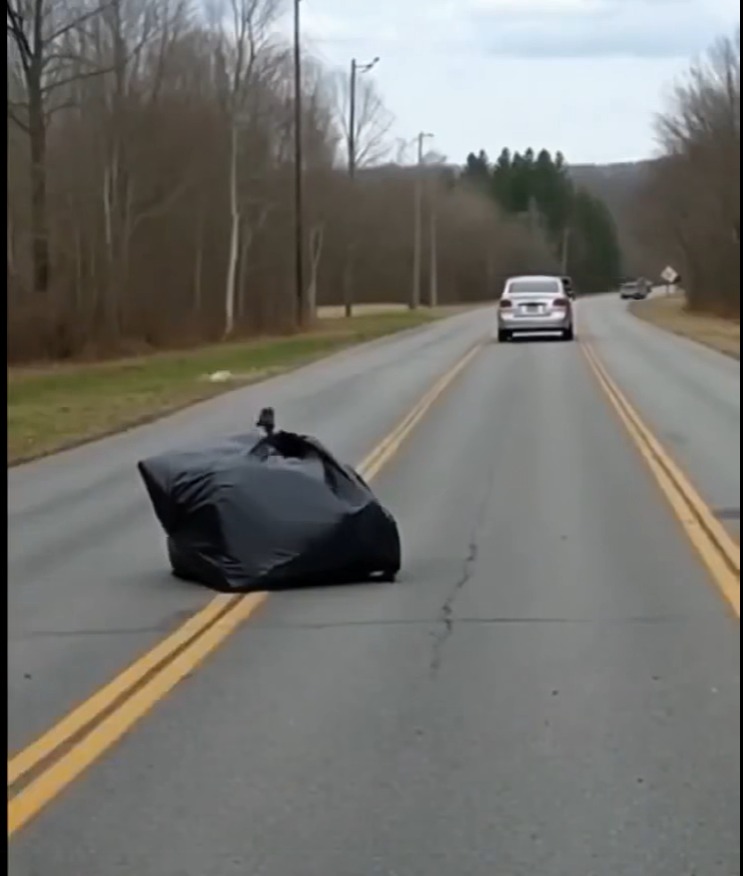 His German Shepherd, Barbara, was curled up in the passenger seat, dozing quietly with her head resting gently on her paws. As he drove through the fading daylight and light rain, the road ahead seemed quiet until his headlights caught sight of a slow-moving vehicle ahead. Something about its pace felt off, prompting John to ease his foot off the gas. As he got closer, he noticed the rear door of the vehicle crack open, and then, in a sudden motion, something was tossed onto the side of the road. The door slammed shut, and the car quickly disappeared into the mist and drizzle.