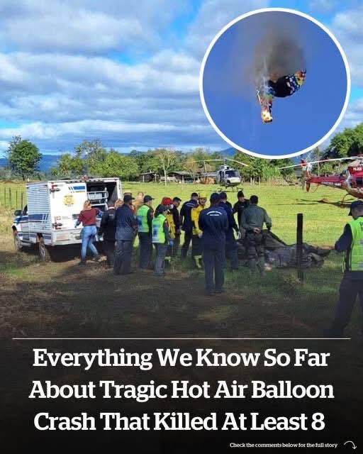 Witnesses described seeing people fall while on fire, and the balloon breaking apart and crashing. Emergency teams arrived quickly, and smoke was still rising from the site.
