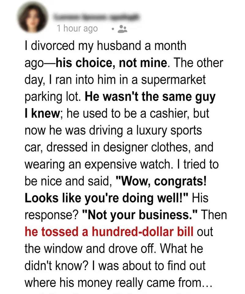 Katherine’s quiet life took a sharp turn when she spotted a pristine white sports car in a supermarket parking lot — and out stepped Michael, her ex-husband.