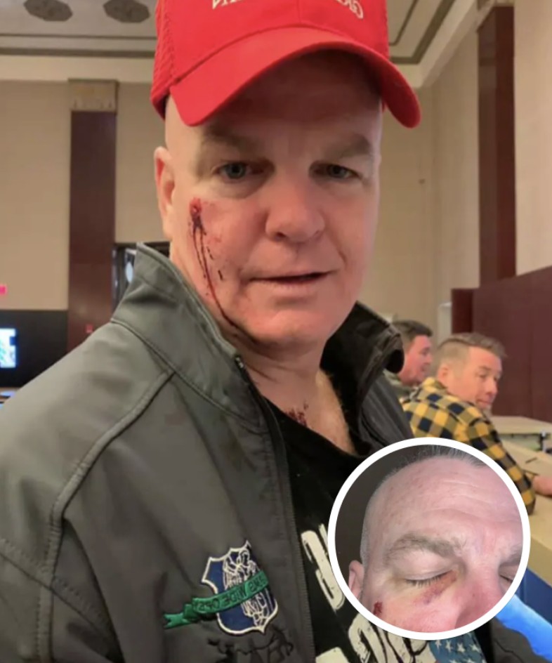 While celebrating his birthday, Retired NYPD Detective Daniel Sprague found himself face to face with a woman who punched him in the face because she did not like his red “Make Fifty Great Again” hat.
